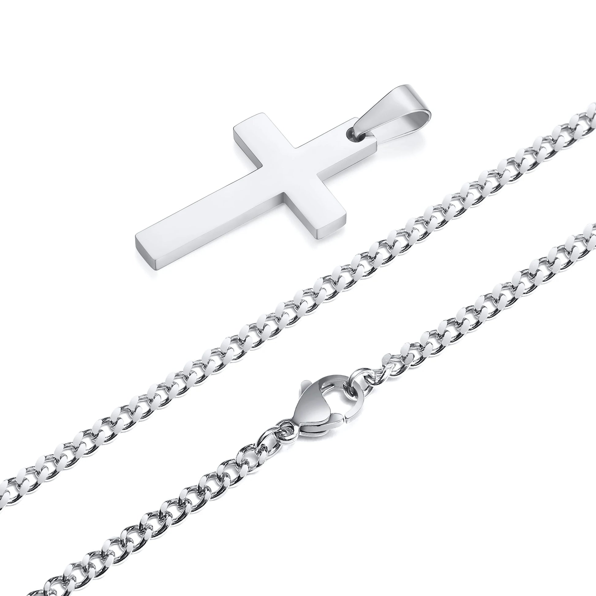 Add timeless elegance to your look with the Classic Cross Pendant Necklace. Featuring a polished cross charm on a sturdy curb chain, this necklace is available in silver, gold, and black finishes to match any style. A versatile piece that combines modern simplicity with meaningful design.