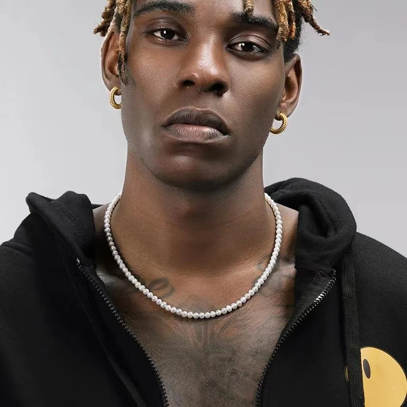 Refine your style with the Classic Pearl Bead Necklace. Featuring a strand of polished white beads, this necklace combines timeless elegance with a modern edge, making it a standout piece for both casual and formal looks.
